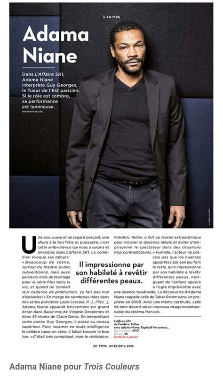 Adama Niane‘s Wikipedia page shares that this great actor was born on August 23, 1966. He was a native of Paris, France. Born in Paris he began spending his time researching films and acting works. When he completed his schooling he then went to the Institute of Theatrical Studies of Paris III to have a degree in acting and theater.